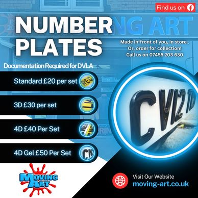 Get road-legal number plates made in store while you wait. Choose from a range of styles and finishes, all produced to DVLA standards.